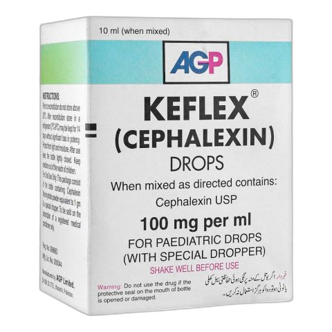 AGP Pharma Keflex Drops are effective in treating respiratory tract infections, urinary tract infections, and skin infections, providing relief from discomfort.Convenient Liquid Form