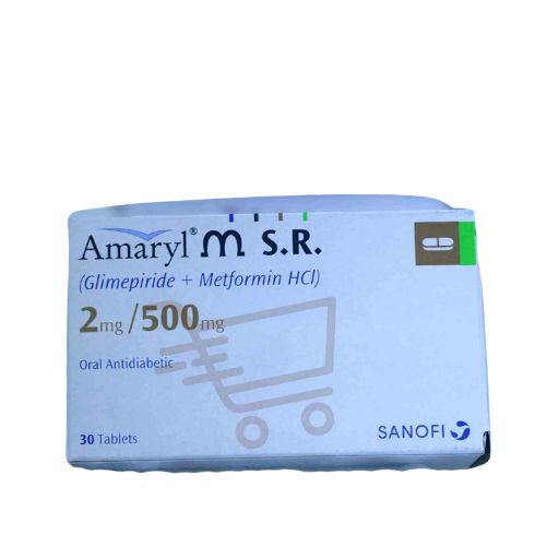 Amaryl-M.S.R 2mg/500mg SR Tablet is a combination medication that contains two active ingredients: Glimepiride (2mg) and Metformin (500mg). This formulation is designed for managing type 2 diabetes in patients whose blood sugar levels are not adequately controlled by metformin alone. Glimepiride helps the pancreas produce more insulin, while Metformin increases the body’s sensitivity to insulin, improving glucose control. This medication should be used alongside a balanced diet and regular exercise to effectively manage blood sugar levels and reduce the risk of complications like heart, kidney, and nerve damage.