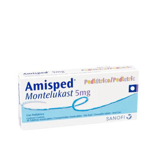 Amisped 5 mg tablets, containing Montelukast, are designed to prevent and manage symptoms of asthma, allergies, and hay fever. This medication is commonly used to control chronic asthma and alleviate symptoms like wheezing, shortness of breath, and nasal congestion. It works by reducing inflammation and narrowing in the airways, making it easier to breathe. Additionally, Amisped is used to prevent exercise-induced breathing problems and to treat allergic rhinitis, providing relief from sneezing, runny or itchy nose, and congestion.
