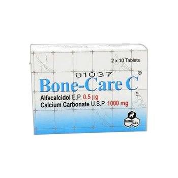 Bone-Care C Tablets 0.5mcg/1000mg is a premium bone health supplement designed to support bone density and strength. Each tablet contains 0.5mcg of Vitamin C combined with 1000mg of calcium, providing a potent blend to promote optimal bone health. This formula is carefully crafted to ensure maximum absorption and effectiveness in maintaining healthy bones.Bone-Care C Tablets 0.5mcg/1000mg Uses