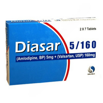 Diasar Tablet 5/160mg is a meticulously formulated medication used primarily for managing hypertension and heart failure. Comprising two active ingredients, Amlodipine 5mg and Valsartan 160mg, this tablet works effectively in reducing blood pressure and improving heart function. Amlodipine, a calcium channel blocker, relaxes the blood vessels, allowing smoother blood flow. On the other hand, Valsartan, an angiotensin II receptor blocker, helps prevent the hormone angiotensin II's effects, further aiding in blood vessel relaxation and blood pressure reduction.