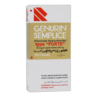 Genurin Forte Tablets 200mg is a well-known medication used for the treatment of bladder conditions such as overactive bladder and urinary incontinence. Each tablet contains 200mg of flavoxate hydrochloride, a muscle relaxant that helps to relieve bladder spasms and control the urgent need to urinate. This medication works by relaxing the muscles in the bladder, reducing frequent trips to the bathroom and improving bladder control. Genurin Forte Tablets 200mg is a convenient and effective solution for individuals struggling with bladder-related issues.Genurin Forte Tablets 200mg Uses