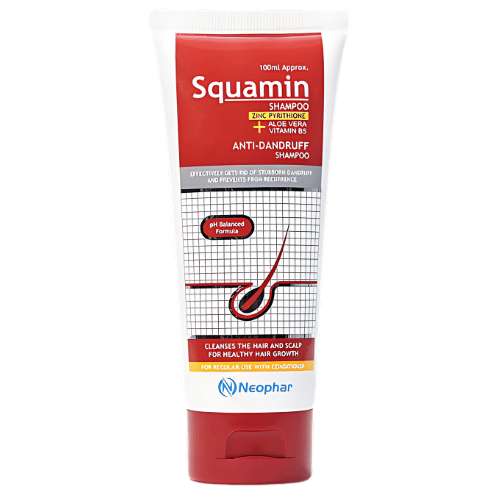 Squamin Anti-Dandruff Shampoo by Neophar Skin Sciences is a targeted treatment shampoo designed to combat both dry and greasy dandruff effectively. Enriched with a powerful blend of active ingredients including Zinc Pyrithione, Climbazole, Tea Tree Oil, and Biotin, this formula helps eliminate dandruff-causing microbes, reduce itching and flaking, and restore scalp health. Suitable for all hair types affected by dandruff, it gently cleanses while nourishing the scalp, making it a reliable solution for those dealing with persistent dandruff issues.